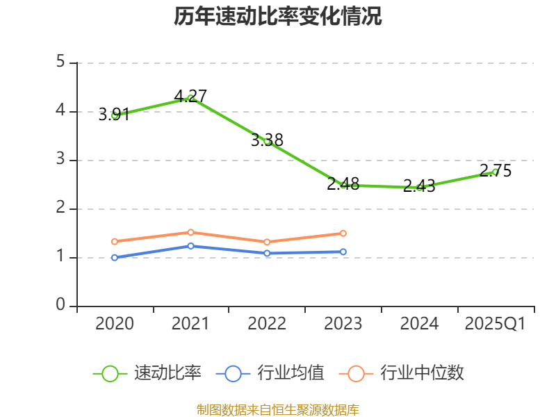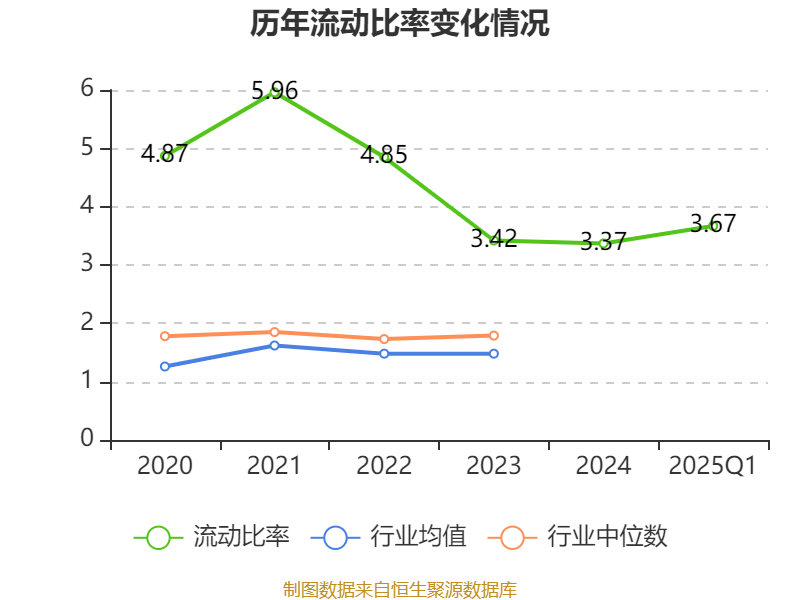 2025年第一季度,公司流动比率为3.67,速动比率为2.75。