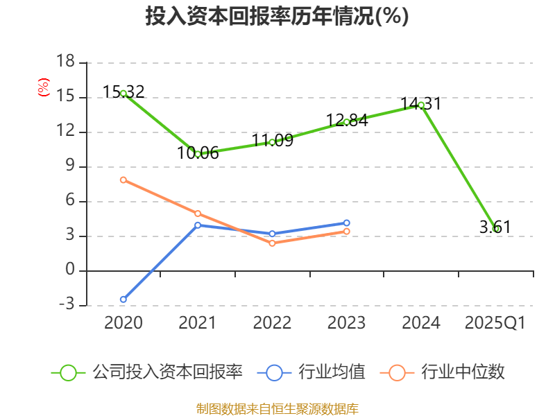 盈利能力方面, 2025年一季度公司加权平均净资产收益率为3.85%,同比下降0.74个百分点。公司2025年第一季度投入资本回报率为3.61%,较上年同期下降0.53个百分点。