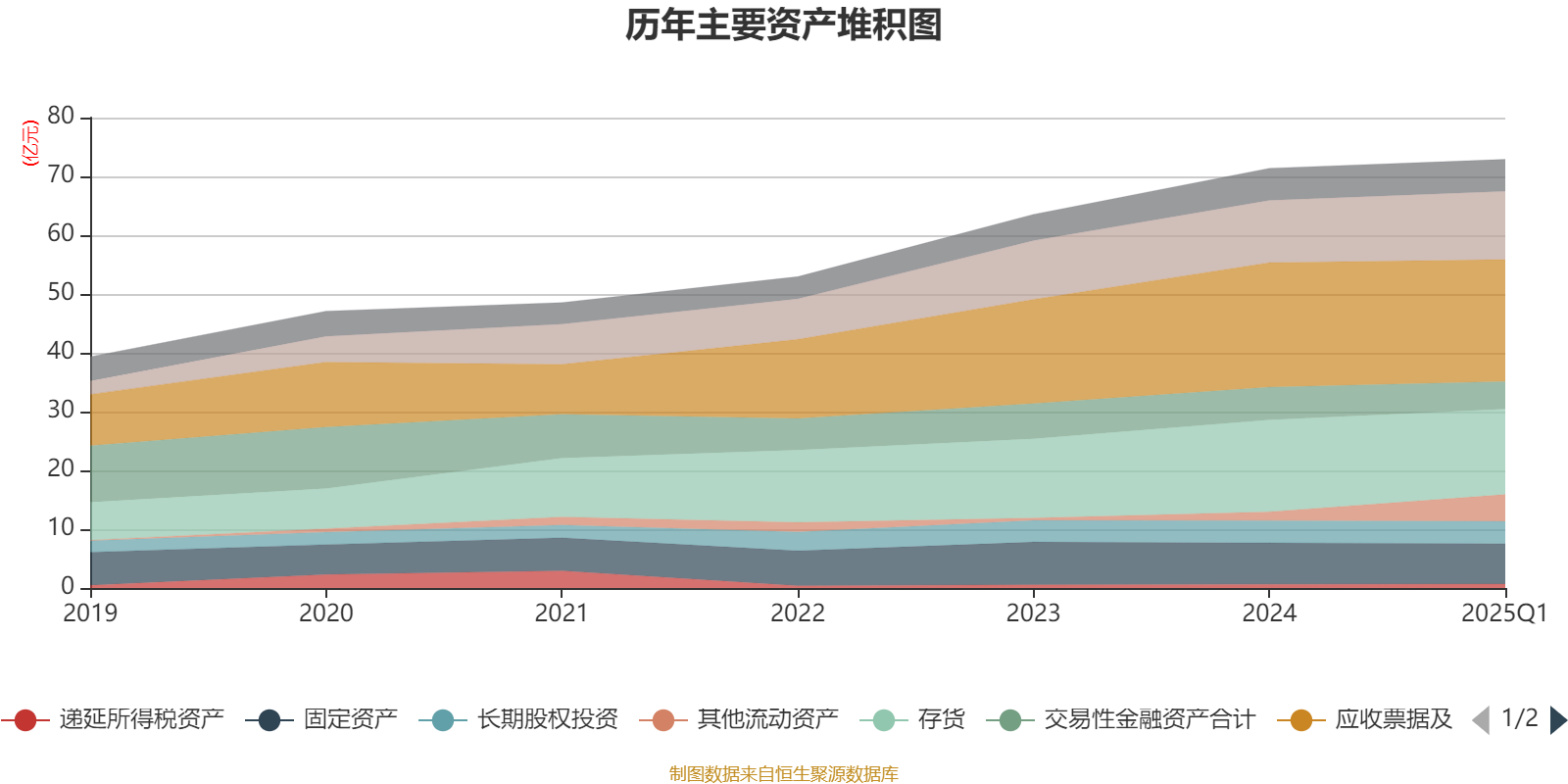 资产重大变化方面,截至2025年一季度末,公司其他流动资产较上年末增加205.73%,占公司总资产比重上升4.17个百分点;存货较上年末减少7.03%,占公司总资产比重下降1.96个百分点;交易性金融资产合计较上年末减少15.82%,占公司总资产比重下降1.37个百分点;应收票据及应收账款较上年末减少2.09%,占公司总资产比重下降1.22个百分点。