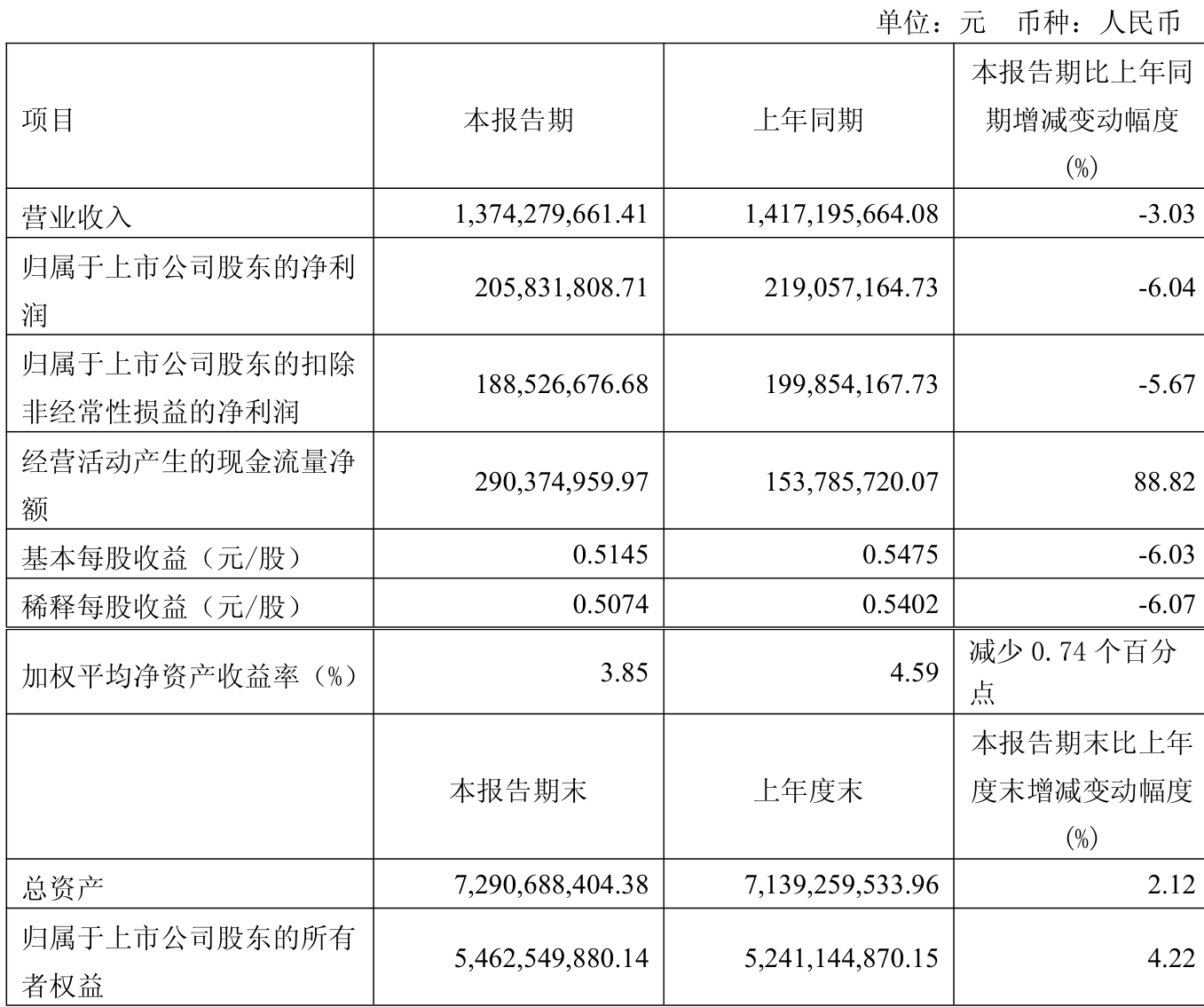 中证智能财讯科博达(603786)4月25日披露2025年第一季度报告。公司实现营业总收入13.74亿元,同比下降3.03%;归母净利润2.06亿元,同比下降6.04%;扣非净利润1.89亿元,同比下降5.67%;经营活动产生的现金流量净额为2.9亿元,同比增长88.82%;报告期内,科博达基本每股收益为0.5145元,加权平均净资产收益率为3.85%。